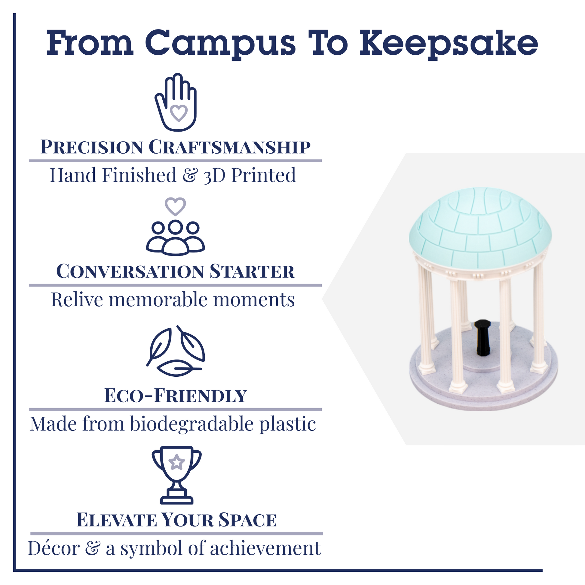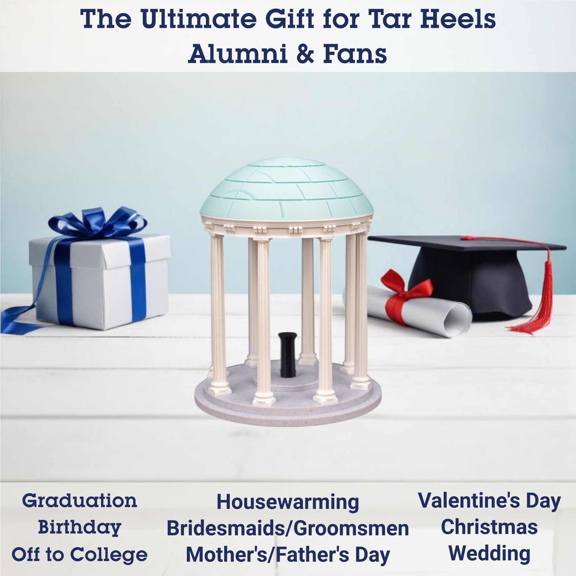 Transform your space with our handmade 3D printed replica of the Old Well, located on Chapel Hill, North Carolina's campus. Perfect for any Tar Heels student or alumni, this piece adds a touch of the North Carolina campus nostalgia to any setting—whether it's your home office desk, bookshelf, or dorm room. It even makes a great cake topper or graduation party favor for college graduates.