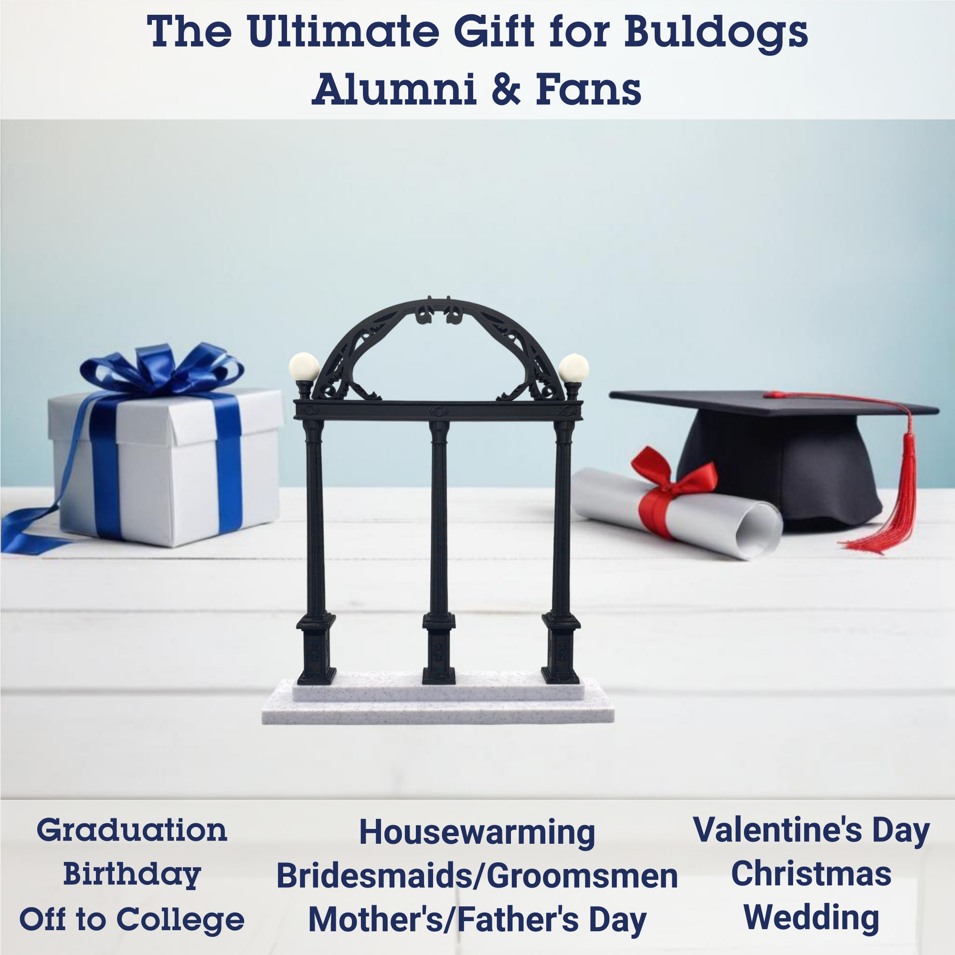Transform your space with our handmade 3D printed replica of The Arch, located on The University of Georgia's campus, in Athens, Georgia. Perfect for students or alumni, this piece adds a touch of nostalgia to any setting—whether it's your home office desk, bookshelf, or dorm room. It even makes a great cake topper or graduation party favor.