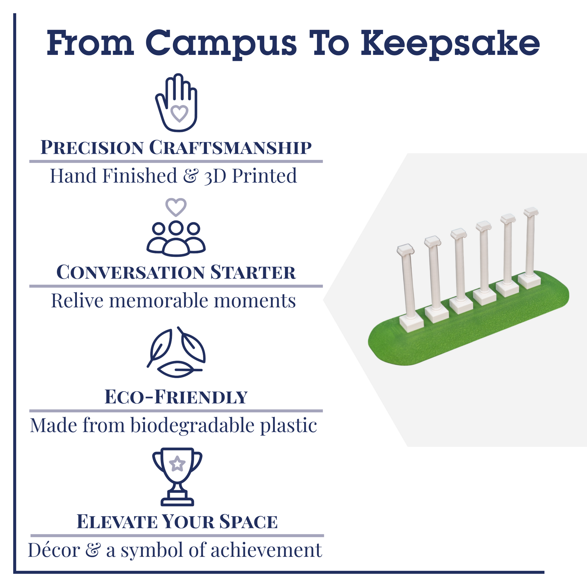- Full color high-detail replica of the campus landmark